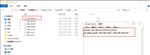 此ip为wtbl_client里面配置的iroute 192.168.2.0 255.255.255.0