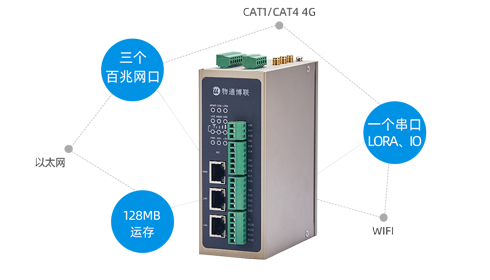 硬件参数:单核CPU,128MB运存 ,3个百兆网口,1个串口,多路AI-AO-DI-DO