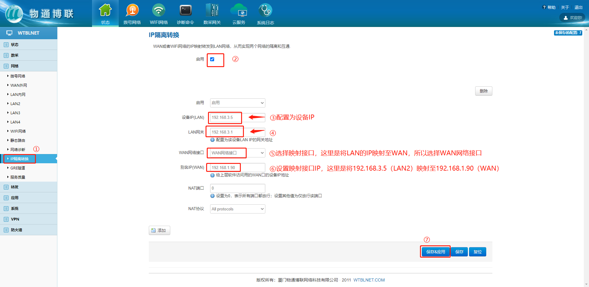 2、设置IP隔离转换