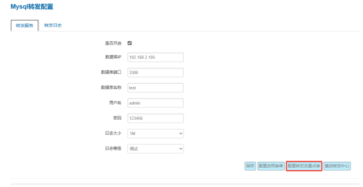 2、配置启用表单,勾选以启用对应表的转发功能,并且可以设置表名称以及表头字段名称