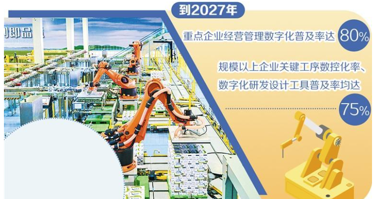 工业和信息化部等7部门日前印发《食品工业数字化转型实施方案》(以下简称《实施方案》)提出,到2027年,重点企业经营管理数字化普及率达80%,规模以上企业关键工序数控化率、数字化研发设计工具普及率均达到75%,打造百个数字化转型典型应用场景,梯次实施千个数字化示范(试点)项目。