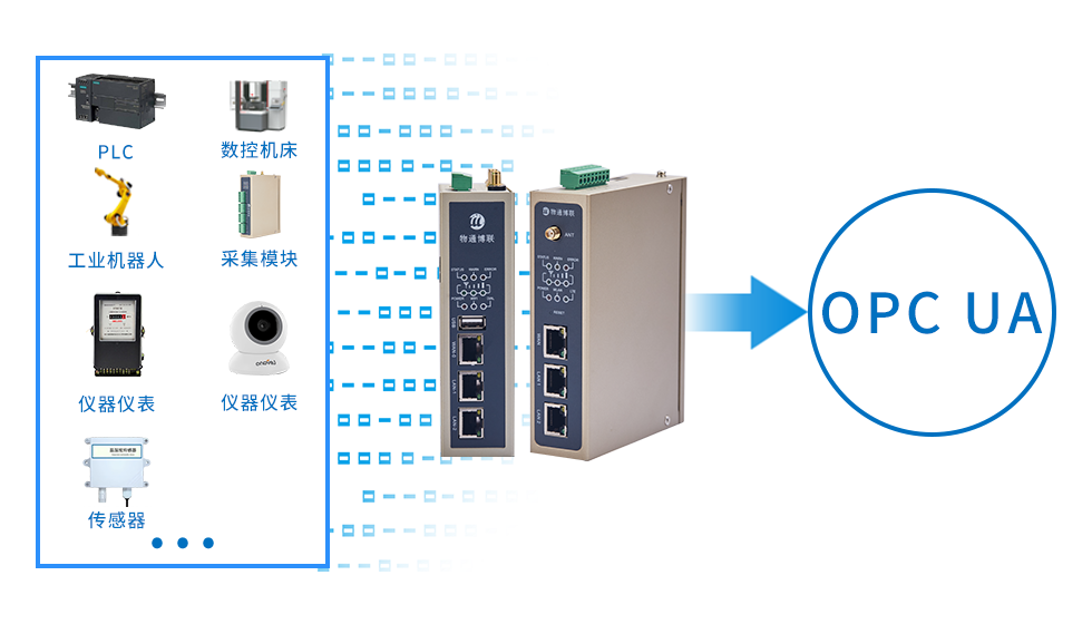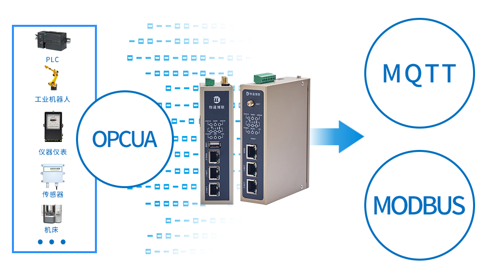 支持采集各种工控设备、DCS、SCADA系统数据,并将数据顺利获得OPC UA协议转发给组态软件、上位机软件、云平台