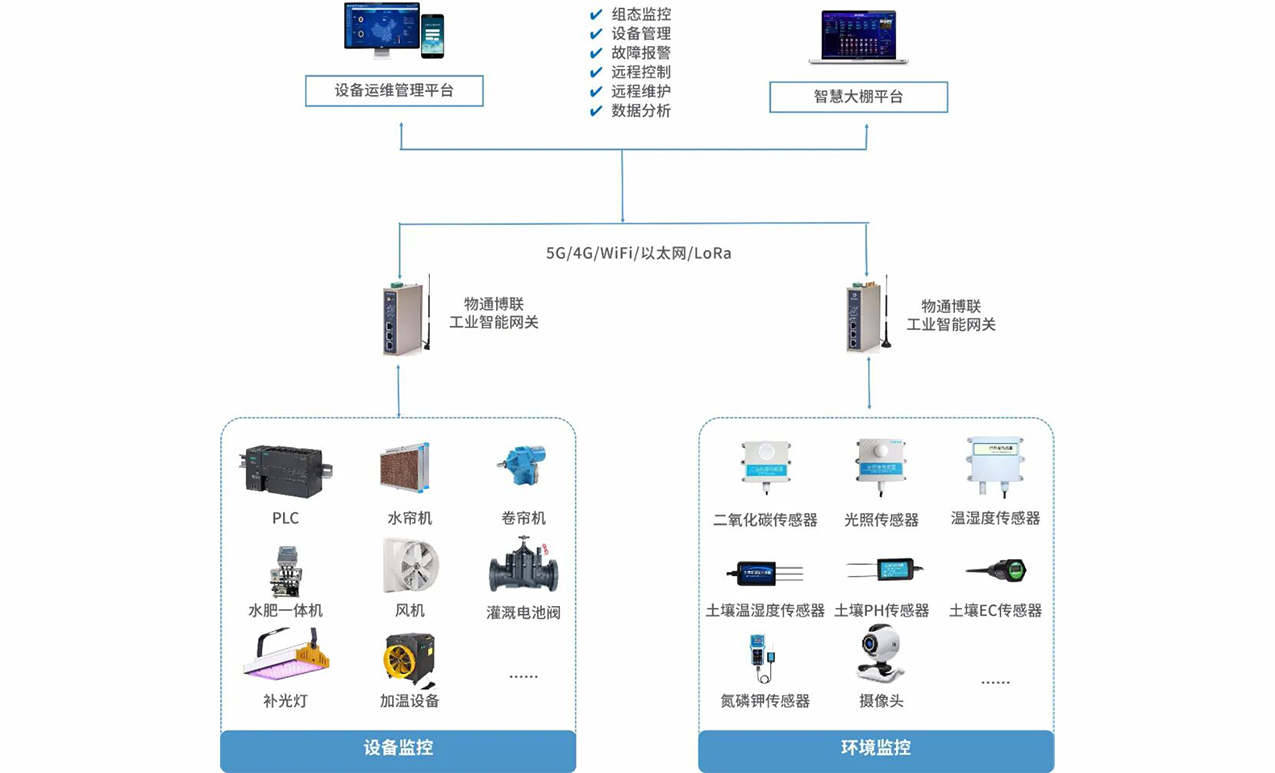 及时获取大棚内的环境数据和设备状态,为环境调控给予依据。