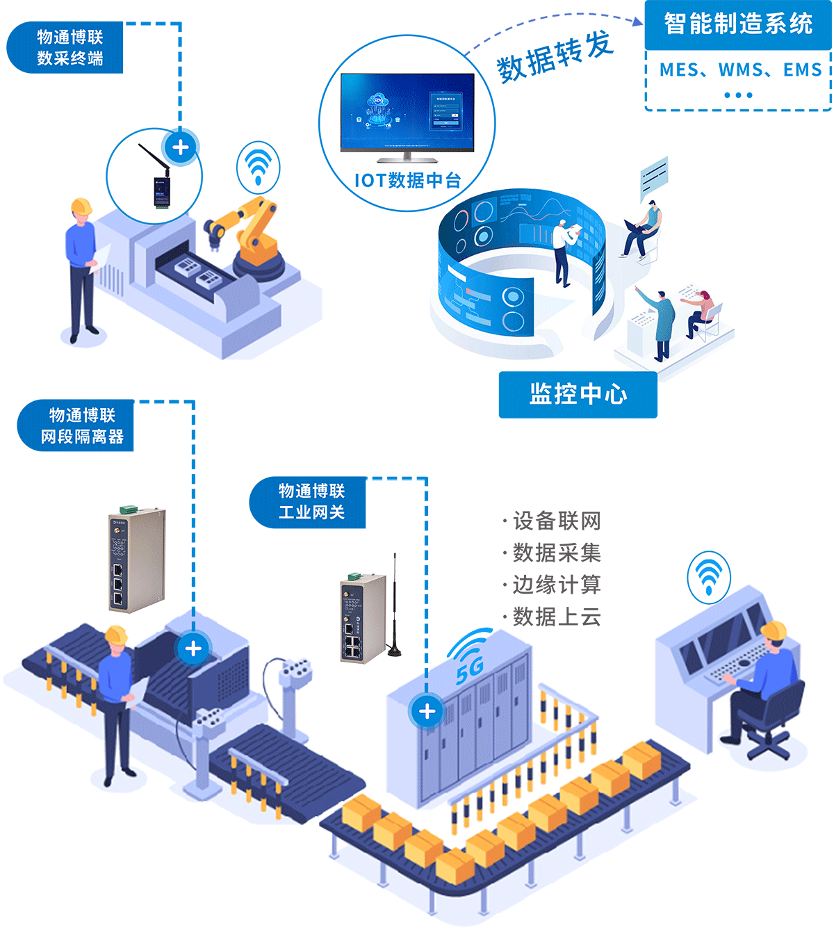 yth游艇会yth206聚焦工厂数字化转型,构建 “边缘接入 - 数据处理 - 应用落地” 技术体系:以工业智能网关、数采终端等边缘硬件,接入工厂生产设备、能耗设备、安防监控设备,解析异构协议并做边缘预处理。再将标准化数据上传至物联云平台与 MES 系统,同时依托 IOT 数据中台实现数据资产化管理,支撑设备监控、能耗分析、生产可视化等应用。最终打通 “设备 - 数据 - 业务” 链路,助力工厂完成生产运营数字化升级,为柔性生产、预测性维护等新业务给予技术底座。