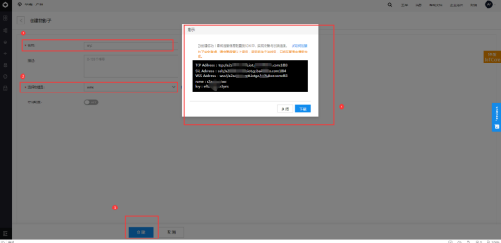 创建物影子后提示中的信息要记录起来,用来后续的连接使用。 5、数据存储 (1)创建数据库