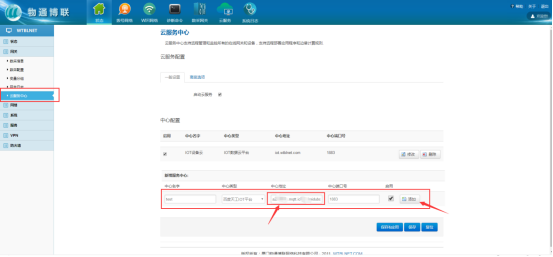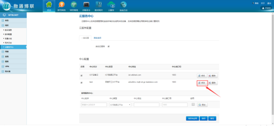 2 工业智能网关配置 1、云中心服务添加 在网关-云服务中心-添加百度天工IOT平台