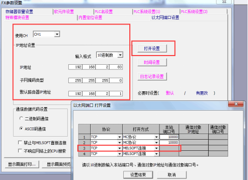 3 MELSEC控制器FX3U外置以太网设置 打开MELSOFTGXWorks2,顺利获得编程口登录FX3U控制器,设置FX3U网口参数,点击“参数”——“PLC参数”——“以太网端口设置”,具体设置见下图:
