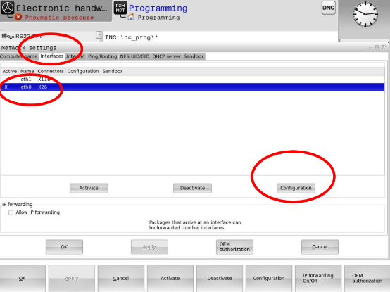 在弹出的对话窗口中进行网络配置 选择“Interface”-->选择“X26”--->选择“配置(Configuration)”