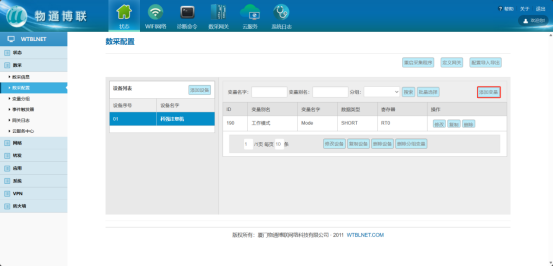 2. 添加变量 根据注塑机点表,添加需要采集的数据点,可以单个添加,也可以批量导入Excel。