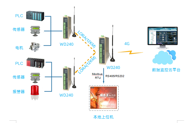 04、云平台顺利获得LORA无线和互联网方式读取WD240的IO和下挂的PLC数据