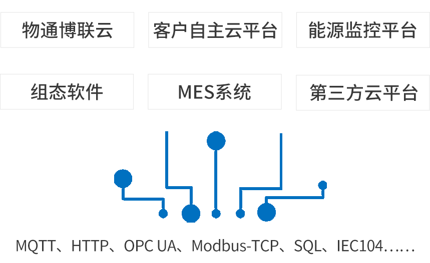 丰富云端协议:支持MQTT、HTTP、OPC UA、Modbus-TCP、SQL、IEC104等