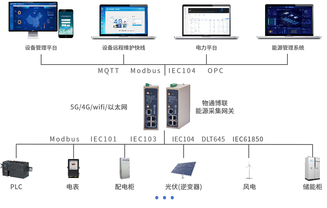数据采集:实现对水电气热等各种品类的能源设备数据采集到能源管理系统、MES等