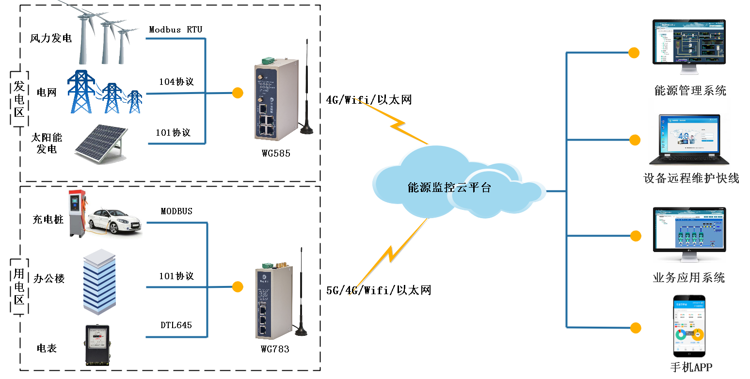 yth游艇会yth206配电室智能网关具有数据采集、协议解析、边缘计算、云端接入等功能,采集配电室现场的高压柜、低压柜、变压器、断路器、温湿度、漏水、水位、空调、风机、除湿机、门禁、烟雾、明火、避雷装置、视频录像等设备的数据,经过协议转换、边缘计算,数据标准化后加密上传到监控平台,顺利获得平台对配电室内所有设备运行状态、设备数据进行监控,实现对电力、环境、安全的一体化监控。