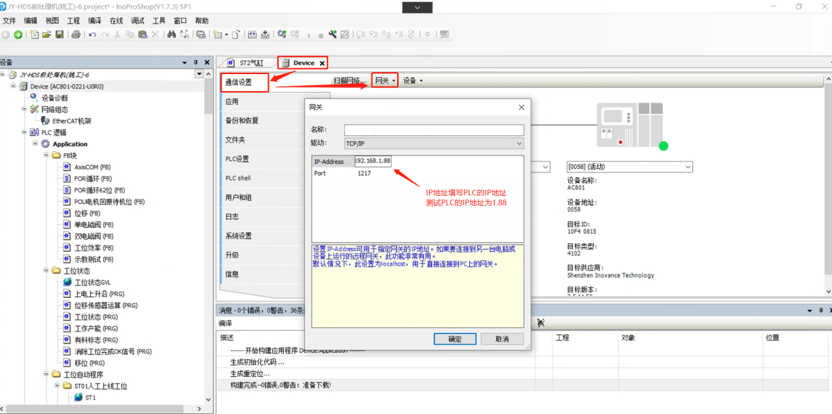 4、汇川InoProShop配置 1、建立通道后,打开InoProShop ,根据连接的AM600型号全称,选择工程型号。