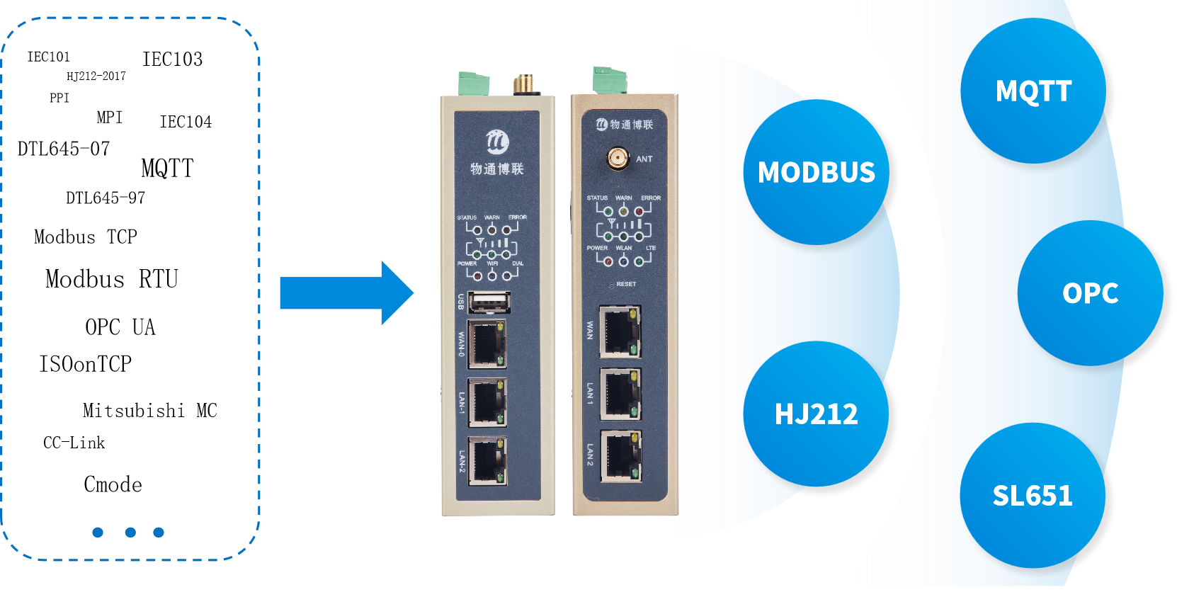 支持将各种协议如Modbus、OPC、PLC协议转换为SL651协议