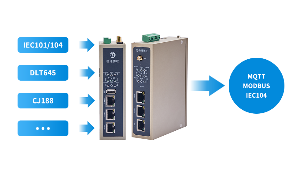 支持IEC101/103/104、CJ188、DLT645、IEC61850等电力协议转换